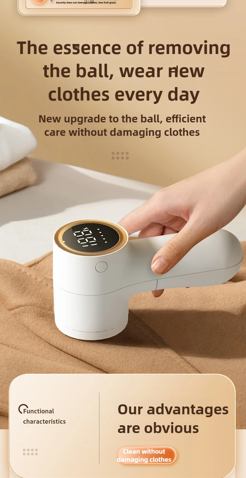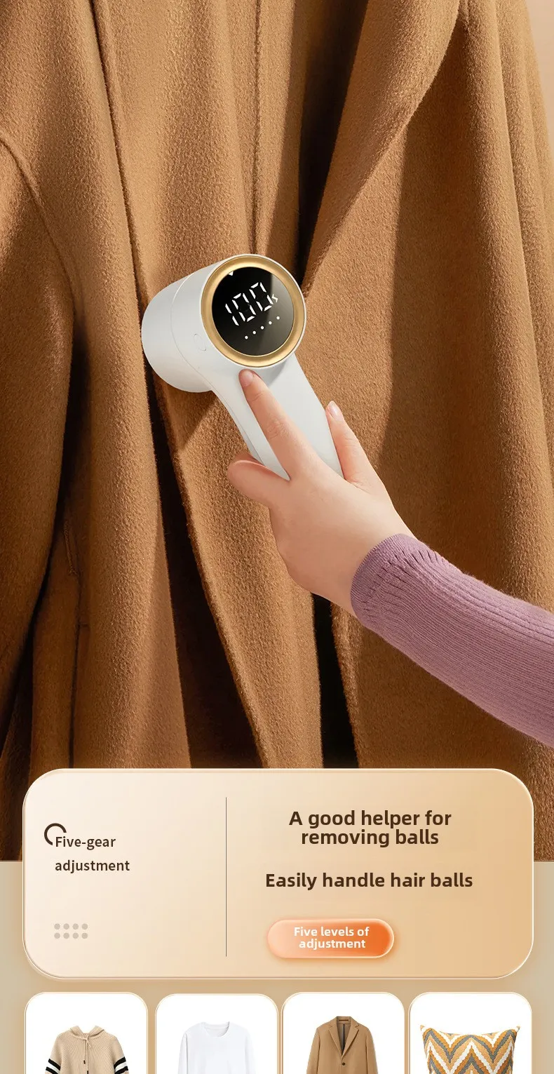 Electric Lint Remover Intelligent Digital Display USB Rechargeable Hairball Trimmer Portable Clothes Shaver 5 Gear Razor - White1